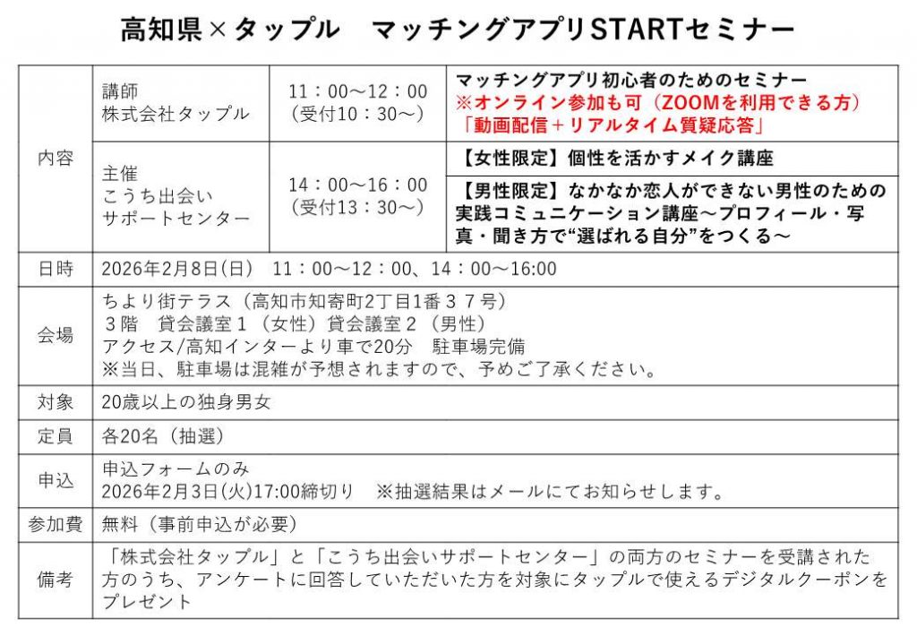 【高知県×タップル】マッチングアプリSTARTセミナー