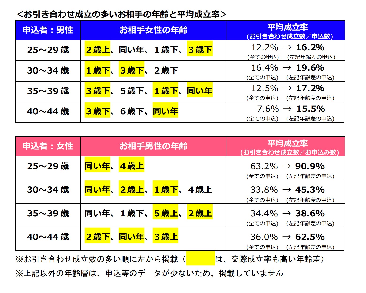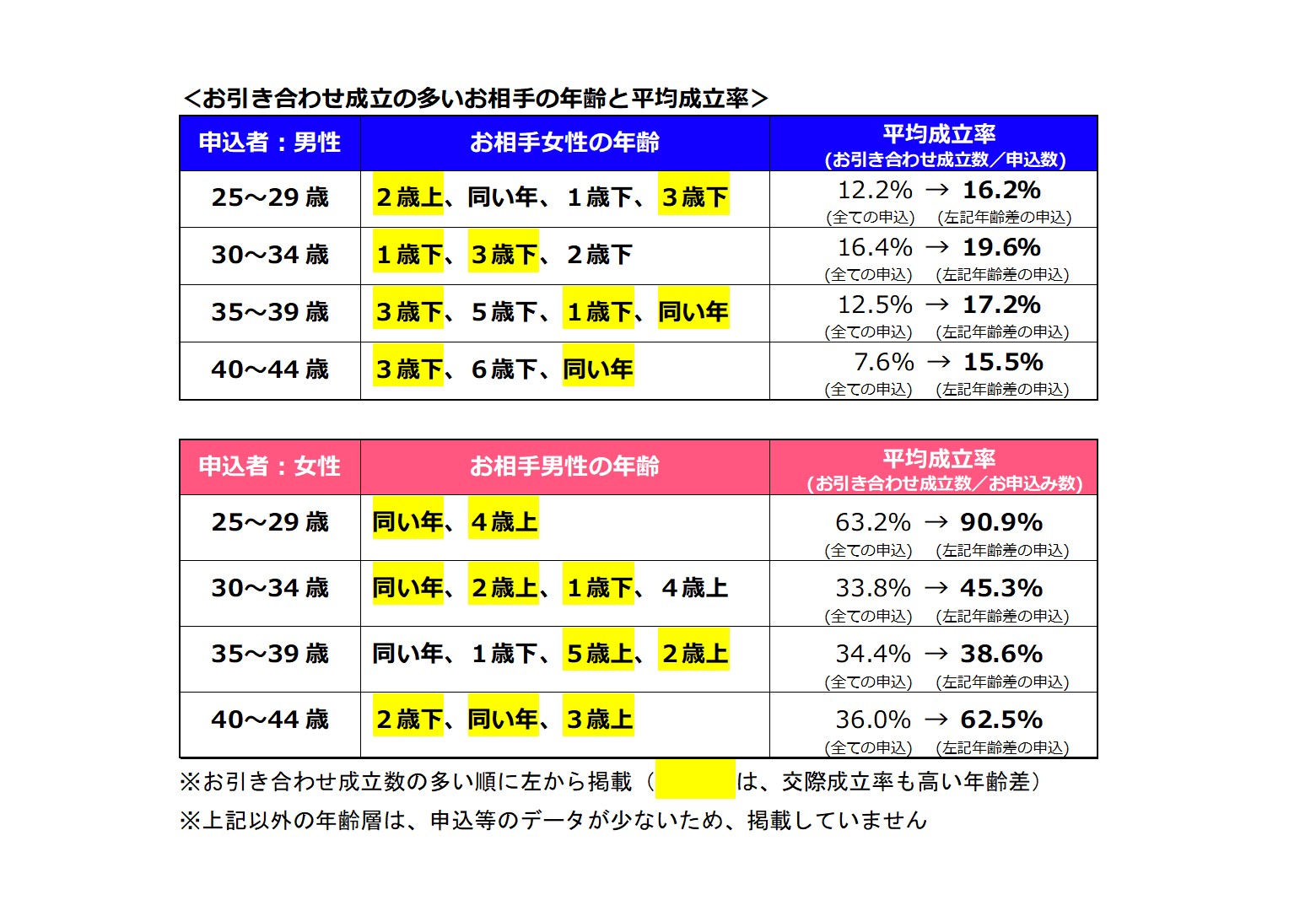 お引き合わせ成立の多いお相手年齢の紹介!!