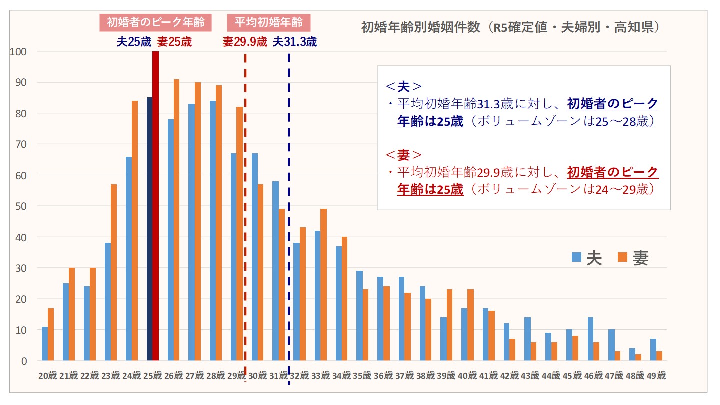 今回は、高知県における「初婚者のピーク年齢」をご紹介します。