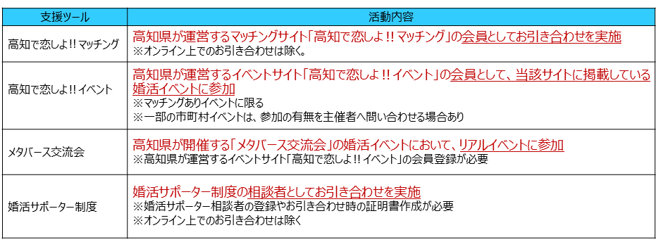 高知県では、様々な出会い支援ツールをご用意しています。