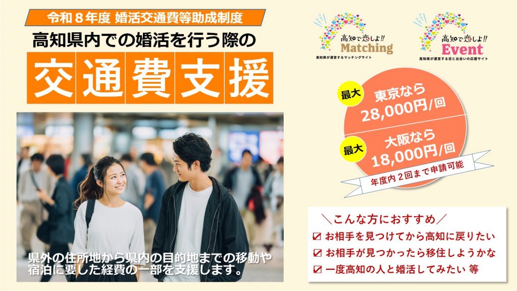 - 2026.3.25 【令和8年度】高知県婚活交通費等助成制度